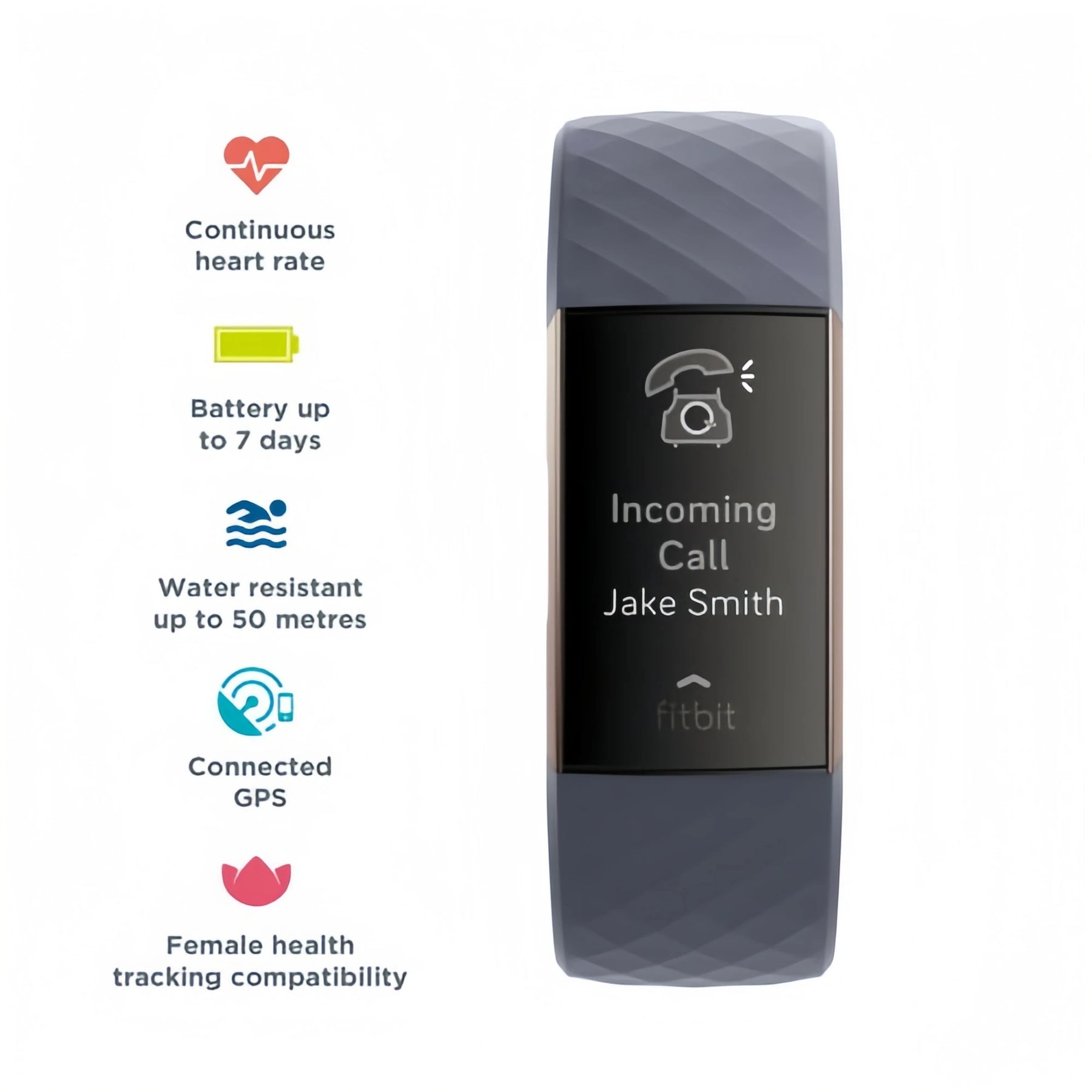 Electropulseproducts. The Fitbit Charge 3 Fitness Tracker Smart Watch is designed to help men and women stay committed to their health and fitness goals. With continuous heart rate monitoring, this smart fitness tracker provides accurate insights into daily activity, calorie burn, and cardiovascular performance.