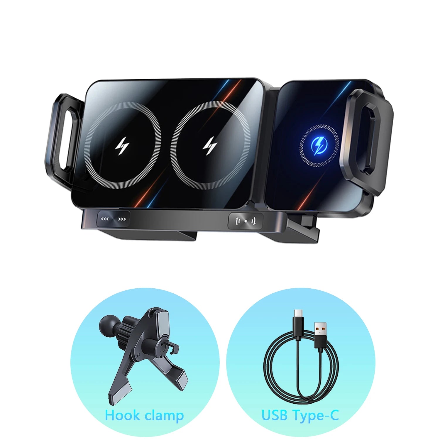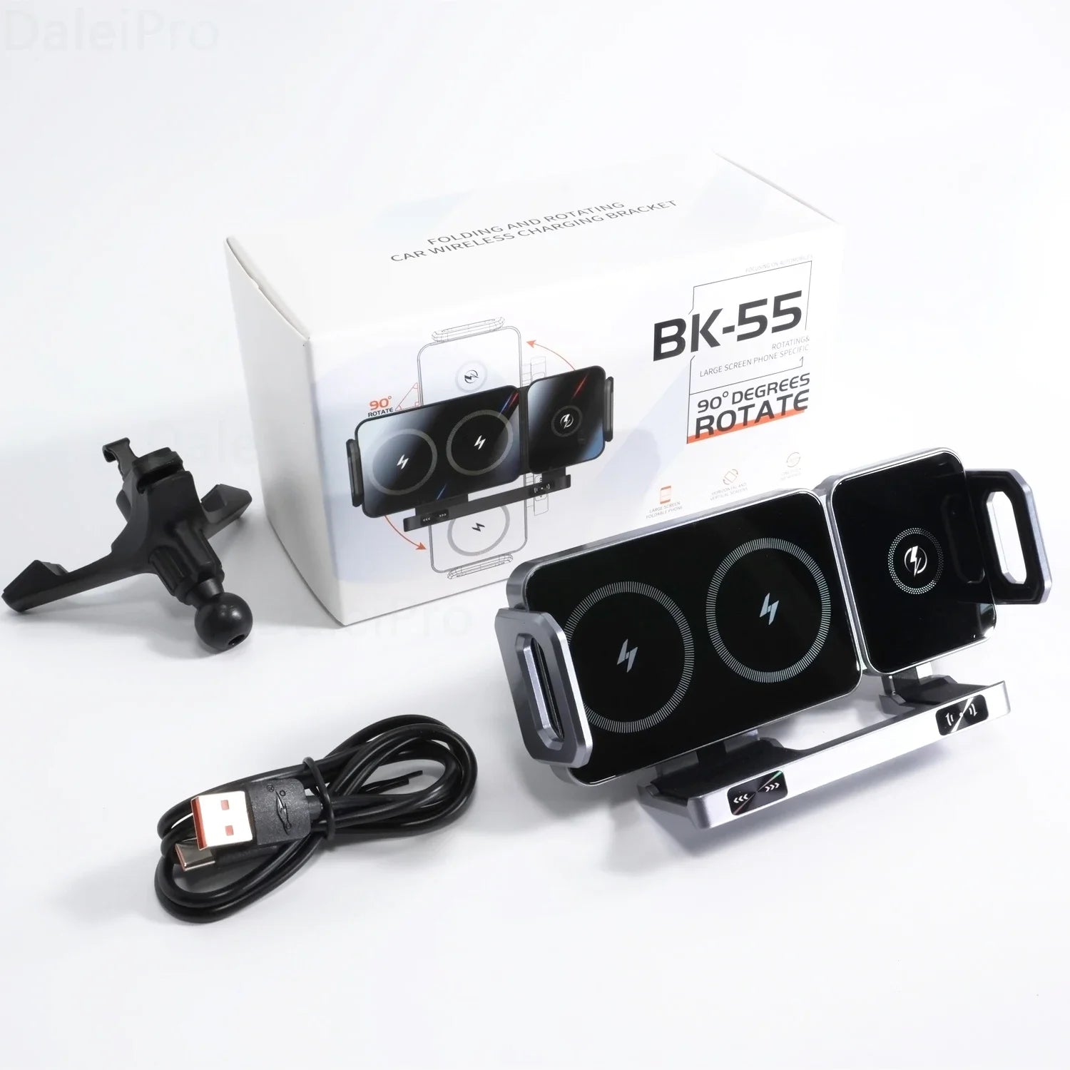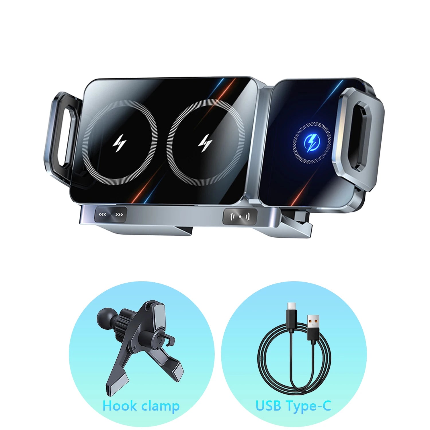Foldable Phone Car Wireless Charger Mount Electric Clamping Rotation Universal Phone Holder For Galaxy Z Fold iPhone Xiaomi Pad
