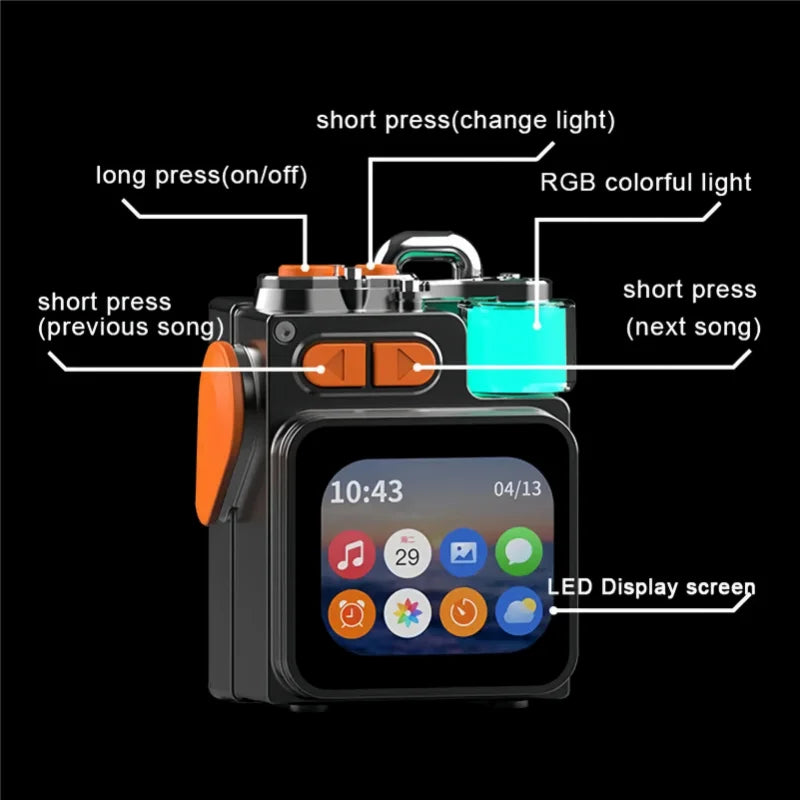 Mini Speaker Smart Wireless Audio Equipment with Touchscreen & HD Sound & LED Lights Bluetooth5.4 for Home Outdoor Party Camping